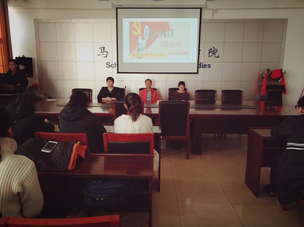 在腾飞楼C517举办本学期“宿舍文化节”表彰大会,学院党总支副书记、学工办老师和优秀宿舍代表、优秀个人代表等50余名学生参加了此次会议。