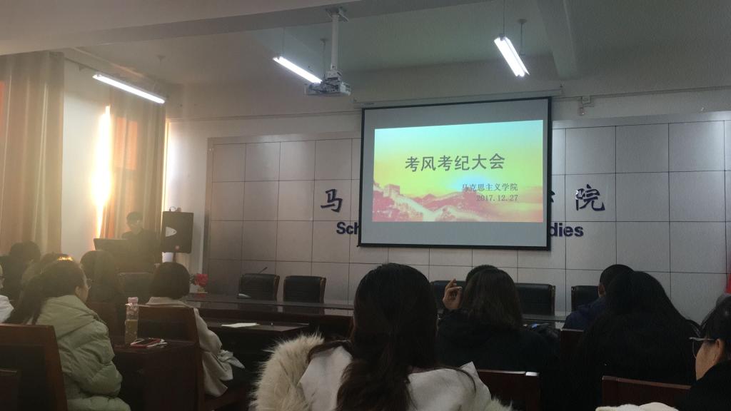 2017年12月27日下午,大象传媒 在腾飞楼C517举行本学期考风考纪教育大会,本次教育大会的主题是“微笑迎考,真诚应考”,学工办老师及大象传媒 大一年级全体同学参加了此次教育大会。