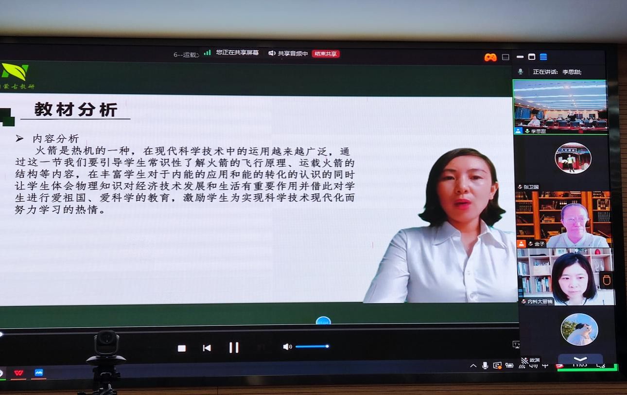 第二部分是阿拉善盟教育体育局选派7位教师作说播课教学展示,金海斌老师和晋楠老师对7位参评教师的教学说播课展示进行一一点评。在该活动过程中,两位老师作为点评专家,紧紧围绕如何打造各学段衔接的“航天蓝”思政金课、聚焦如何在课程设计中深度融入航天元素,针对优化教学内容、创新教学方法等方面进行指导和评价。