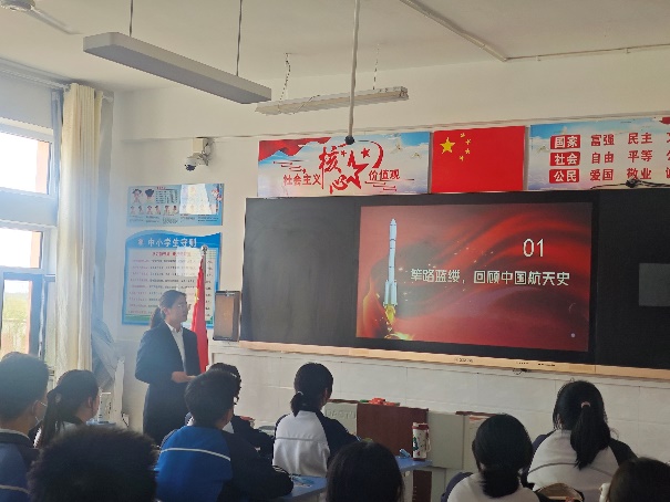 的晋楠老师以“共乘东风上九霄——铸牢中华民族共同体意识 凝聚航天强国建设力量”为题,内蒙古师范大学附属阿拉善中学的王蕾老师以“弘扬载人航天精神,砥砺奋进伟大征程”为题,为不同年级的中学生及现场听课的各学段思政课教师献上了一堂有知识、有乐趣、有思想、有深度的思政示范课。
