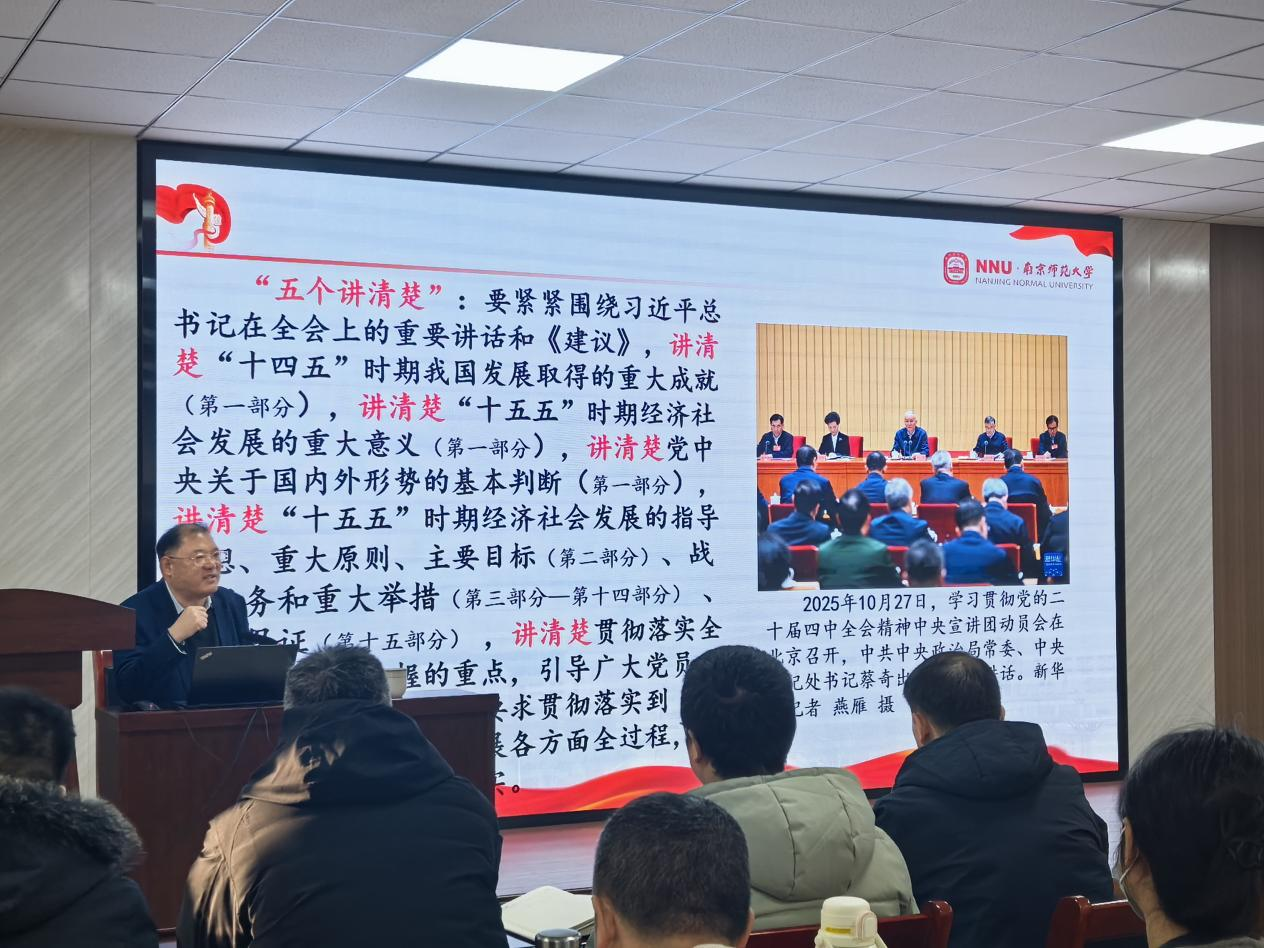 12月29日上午,王刚教授以党的二十届四中全会精神为主题,系统阐释了“十四五”时期我国发展取得的重大成就和“十五五”时期我国社会发展的指导思想和主要目标,并就如何学习贯彻党的二十届四中全会精神提出了相应的方法论指导,作了高质量的宣讲报告。