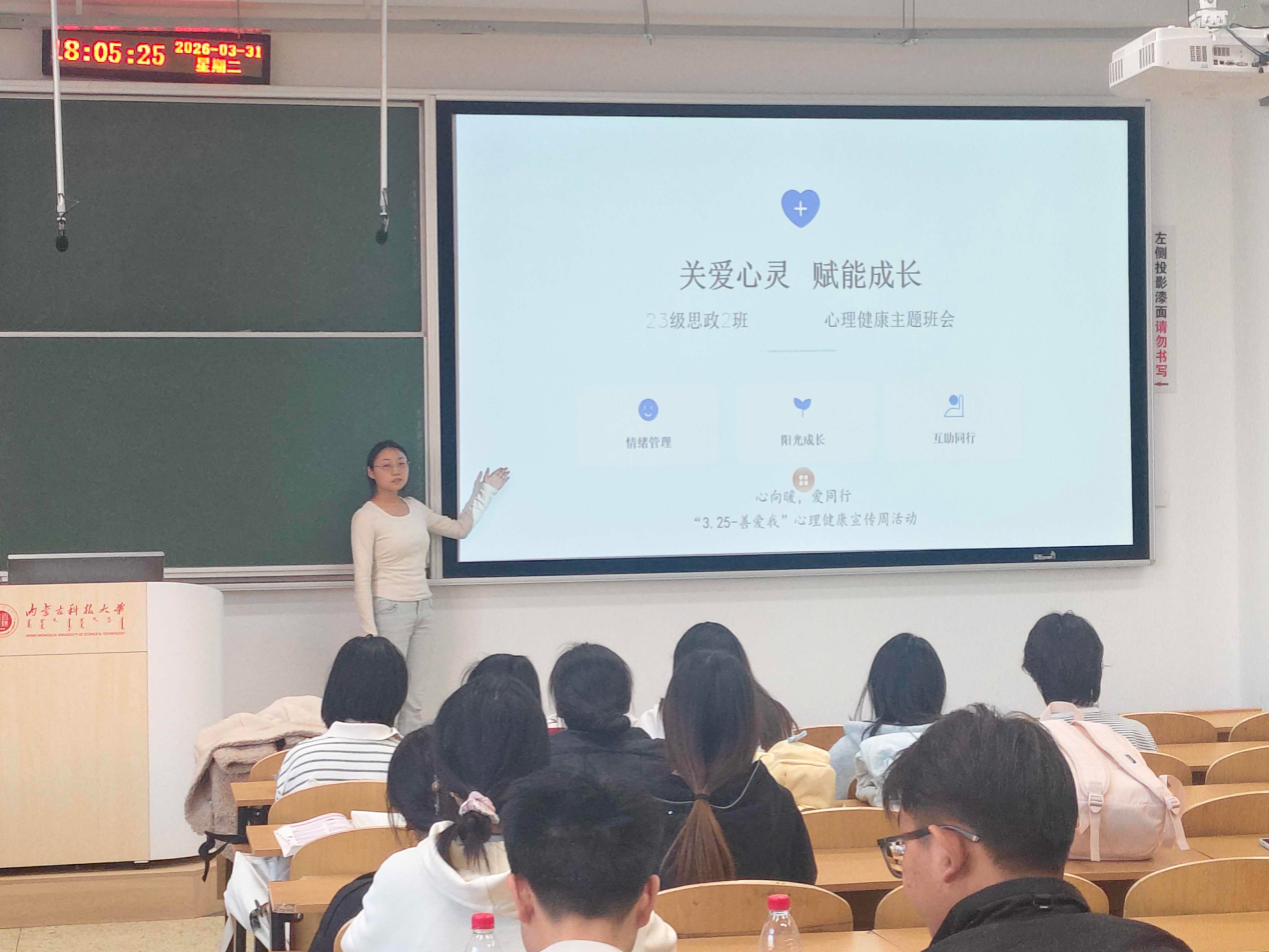 心理健康月期间,学院围绕“关爱自我 从心出发”“关爱心灵 赋能成长”两大主题,组织各班级开展心理健康教育主题班会。班会聚焦大学生常见的学业压力、人际交往、情绪管理等现实困惑,以分享交流、互动探讨的形式,引导同学们正视自身心理状态,敞开心扉倾诉心声,在倾听与陪伴中疏解心理压力,学习科学的情绪调节方法,进一步筑牢心理健康防线,也让“善待自己、关爱自我”的理念深入人心。
