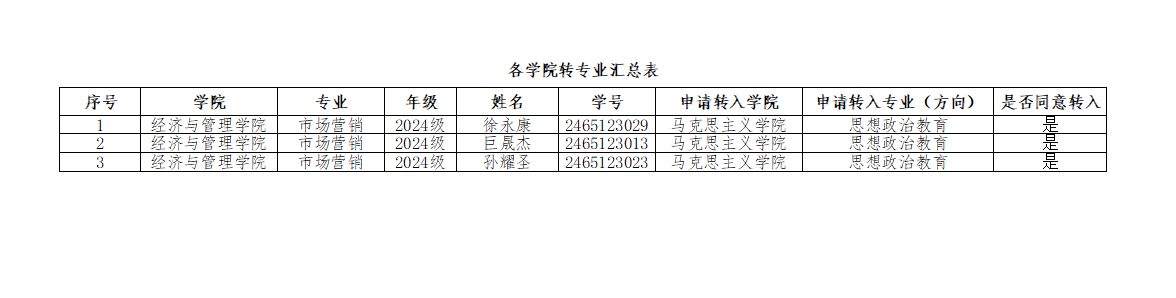 根据《马克思主义学院2025年转专业实施细则》,经本人申请,学院面试,学院转专业工作领导小组审核通过,现将拟转入人员名单进行公示。公示期两天,时间为: 2025年4月29日-2025年4月30日。如有异议,请联系马克思主义学教学办(秋实楼副楼519)。 大象传媒 2025年4月29日