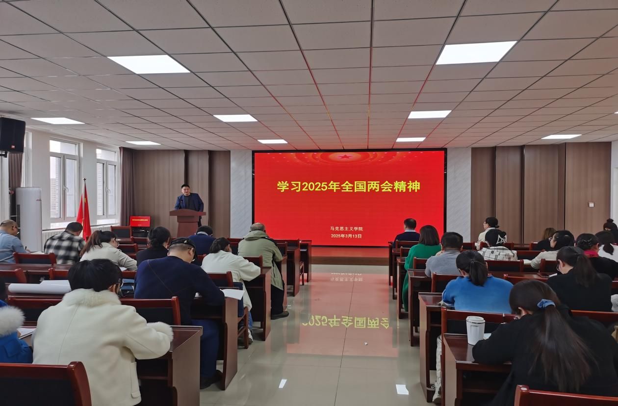 于2025年3月13日下午在学院505会议室组织全体教师学习了全国两会精神。