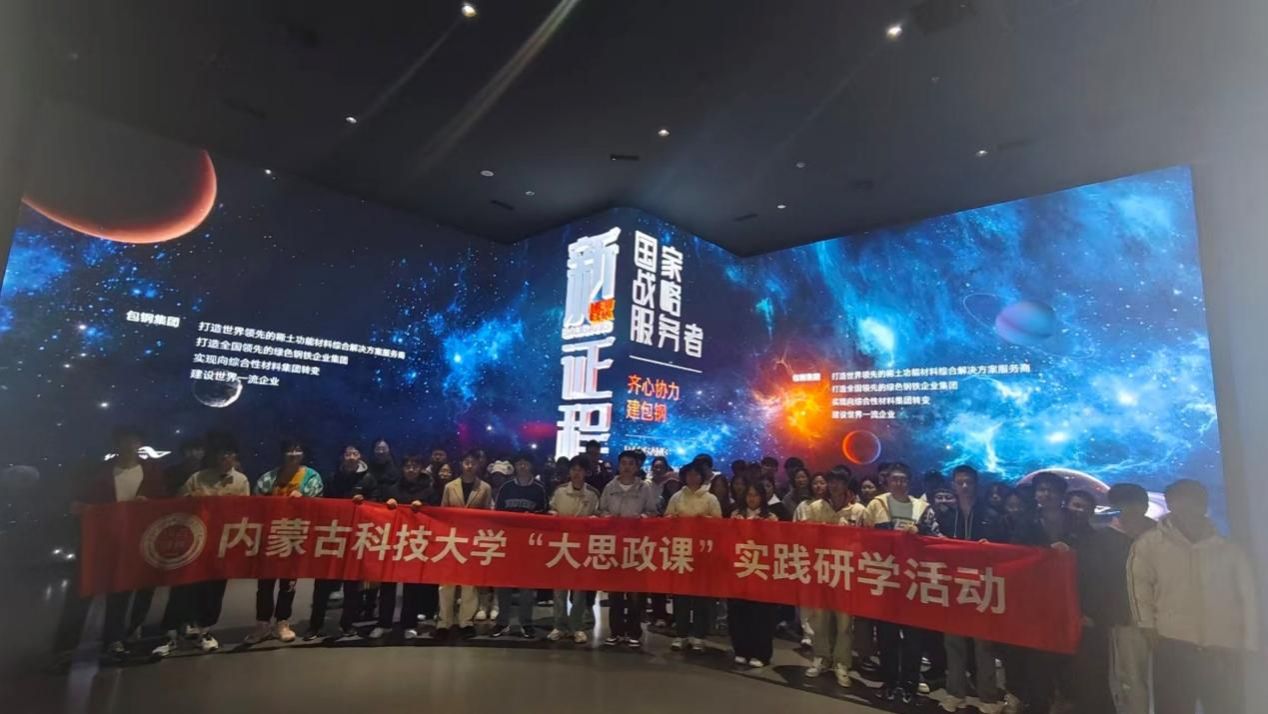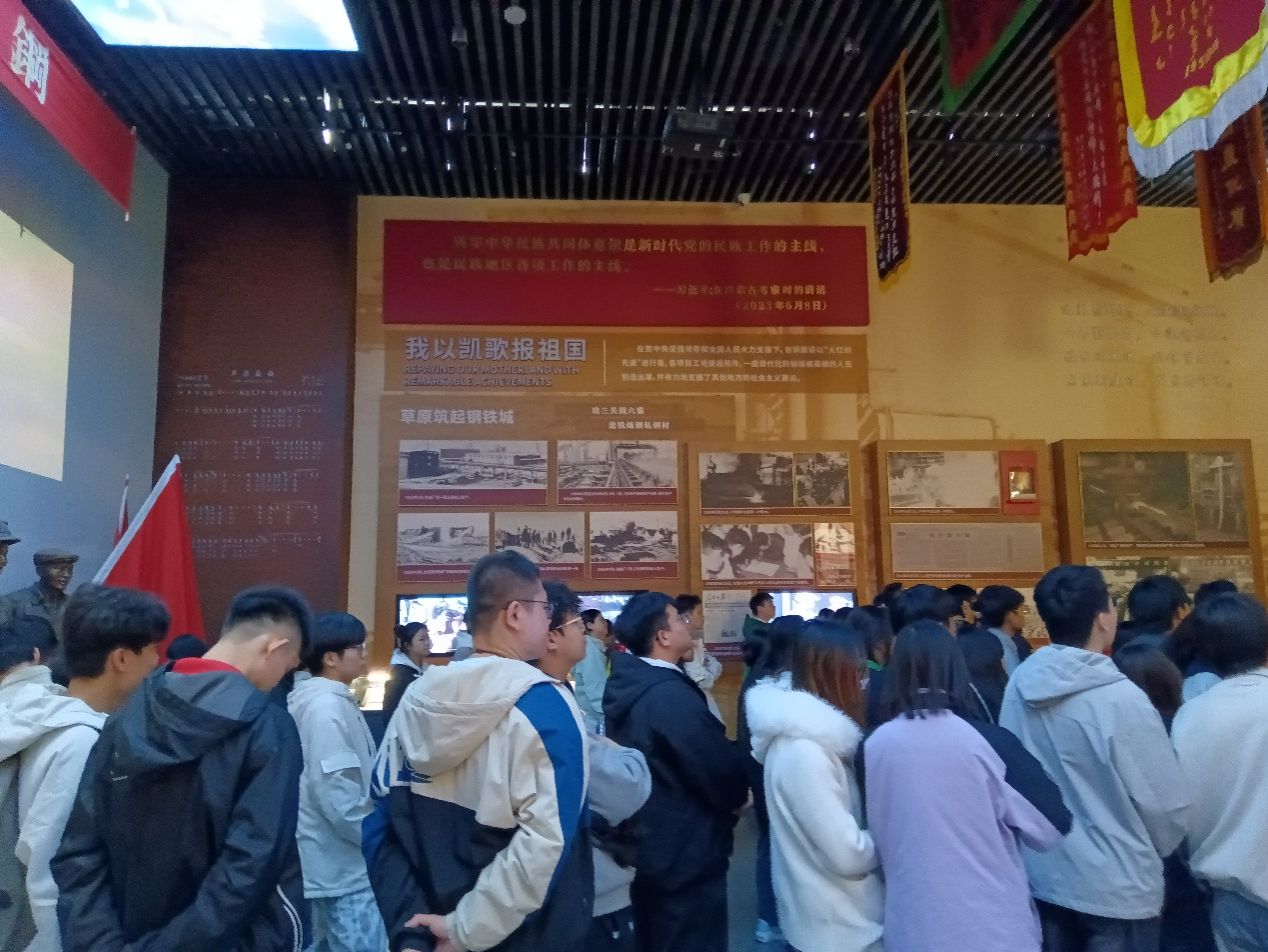 思想政治理论课教学的实效性,中国近现代史教研室按照《中国近现代史纲要》课程教学大纲的要求和实践教学计划的安排,2025年10月18日下午,由叶后坡、马宁两位教师带领九十余名学生前往“齐心协力建包钢”主题展馆开展“大思政课”实践研学活动。