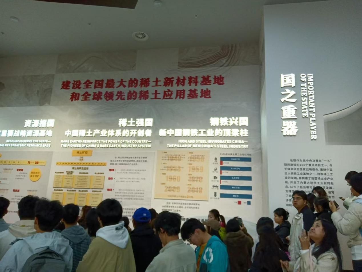 在包钢会展中心“齐心协力建包钢”主题展馆,讲解员讲述了包钢建设发展各个时期的历史场景,带领大家参观了包钢从上世纪五十年代建厂到今日现代化流水线的历史长廊,让大家深刻的感悟到在党中央号召下,全国支援和推动包钢从无到有,从小到大,从弱到强的沧桑巨变;通过一幅幅老照片、一件件珍贵文物、一段段影像资料,再现了老一代包钢人团结一心、无畏严寒、艰苦奋斗建设草原钢城的感人事迹,深切感受到包钢人为国家甘愿奉献的执着勇气与魄力。