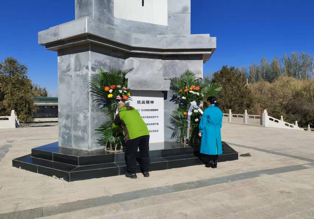 最后,在五原抗日烈士陵园举行了祭奠活动,师生代表为抗日烈士纪念碑敬献花篮并整理缎带,全体党员和入党积极分子进行了鞠躬默哀,以最庄重的仪式表达对抗日先烈的深切缅怀与崇高敬意,缅怀他们为国家和民族牺牲的奉献精神。