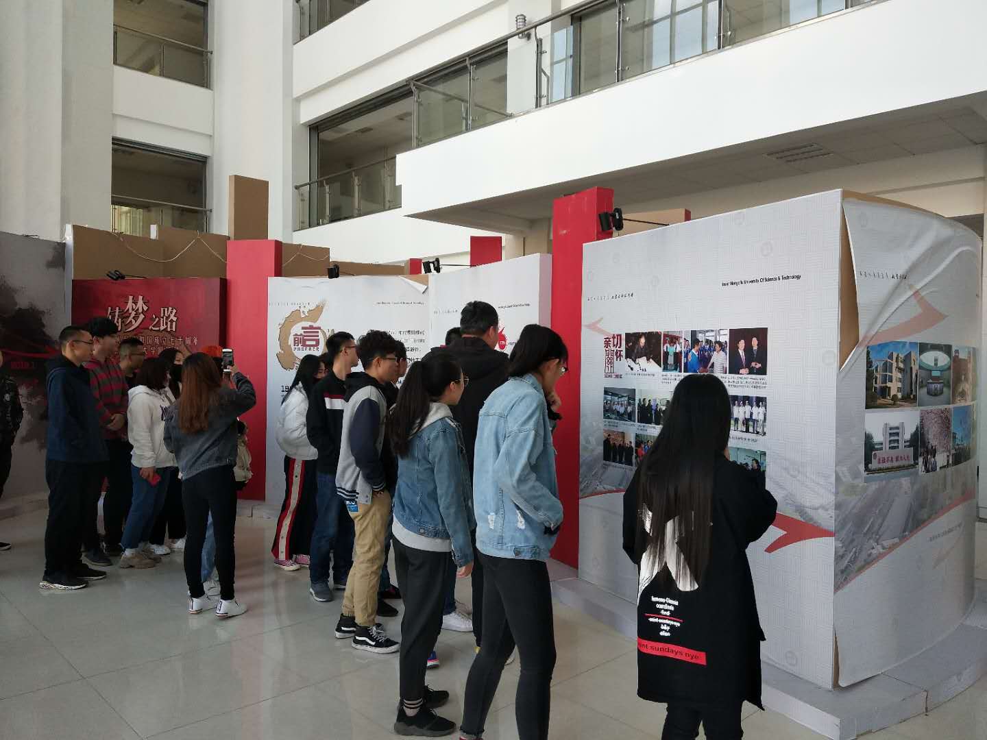 建校63年来,特别是改革开放40年来的发展历程和发展成果。参观过程中,同学们或驻足观赏,或拍照留念,通过深入了解学校的历史、发展状况和成果,深化了对科大学生这一身份的认同感,提升了同学们对学校的荣誉感和责任感。
