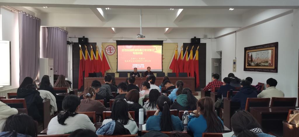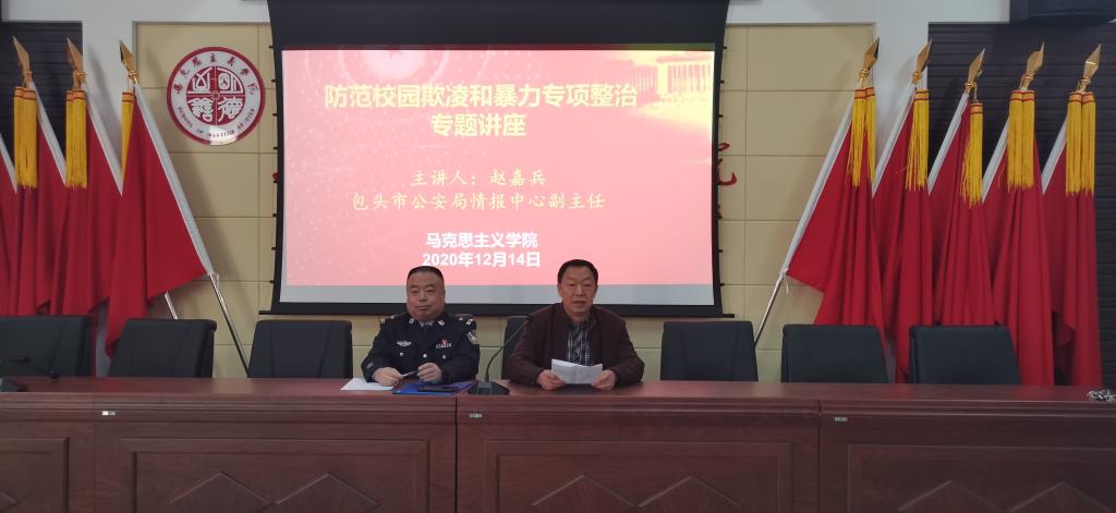 邀请包头市公安局情报中心副主任赵嘉兵警官、昆区公安分局政办室裴承君警官,在腾飞楼C509会议室开展了“防范校园欺凌和校园暴力专项整治”专题讲座。学院党总支副书记、副院长杨永旺主持讲座。