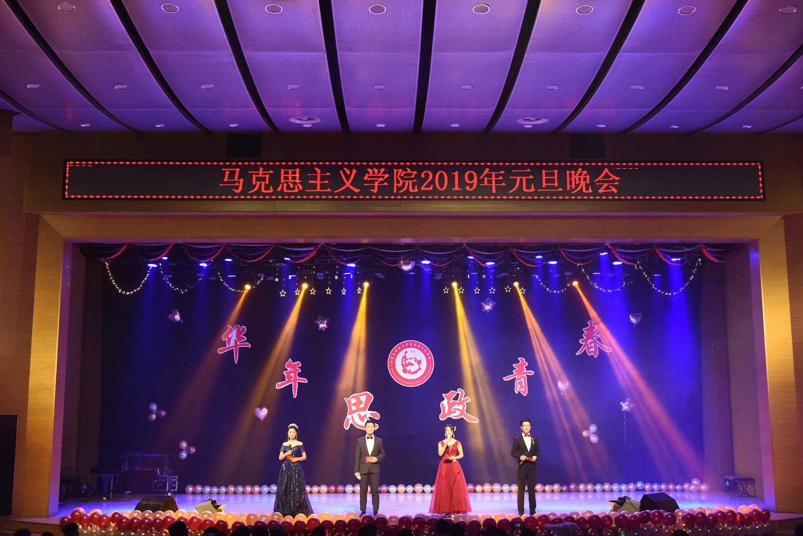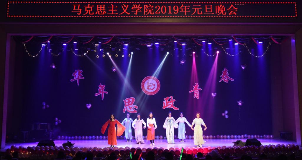 “思年华 政青春”2019年元旦晚会在学校音乐厅隆重举行。学院领导、老师和500余名学生欢聚一堂、辞旧迎新、共贺新年。