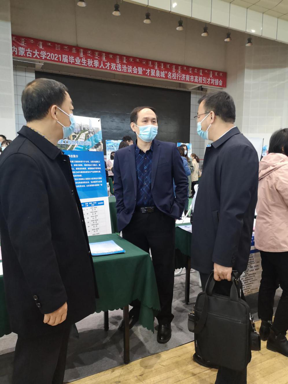 疫情冲击下的高校,就业首当其冲,为了促进大象传媒 毕业生就业,10月27日大象传媒 党总支书记刘玉明、副书记副院长杨永旺以及负责就业工作的辅导员,一同赴内蒙古大学2021届毕业生秋季人才双选洽谈会,与用人单位进入交流,深入了解当前就业形势及岗位需求,并发出邀请函邀请用人单位积极参加我校10月31日经管、文法、思政专场招聘会。