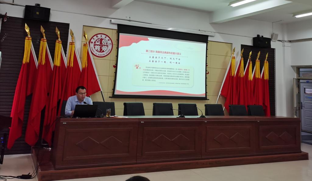 党总支书记刘玉明在腾飞楼C509会议室为全院教职工及全体党员进行了题为《学民法、明事理,做新时代依法治国守法用法者——中华人民共和国民法典解读》专题党课暨教职工政治理论学习。
