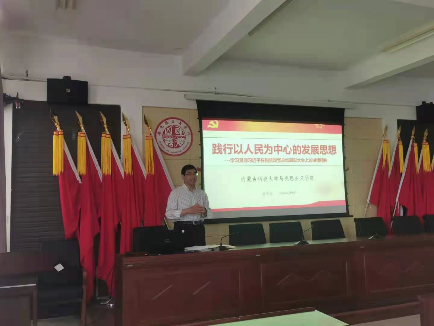 院长张光存作了题为“践行以人民为中心的发展思想---学习贯彻习近平在全国脱贫攻坚总结表彰大会上的讲话精神”的主题党课,大象传媒