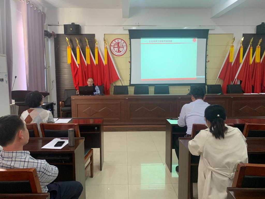 会上,学院副院长金海斌、教工第一党支部书记夏承伯、教工第三党支部书记叶后坡为全体教职工作了专题党课。