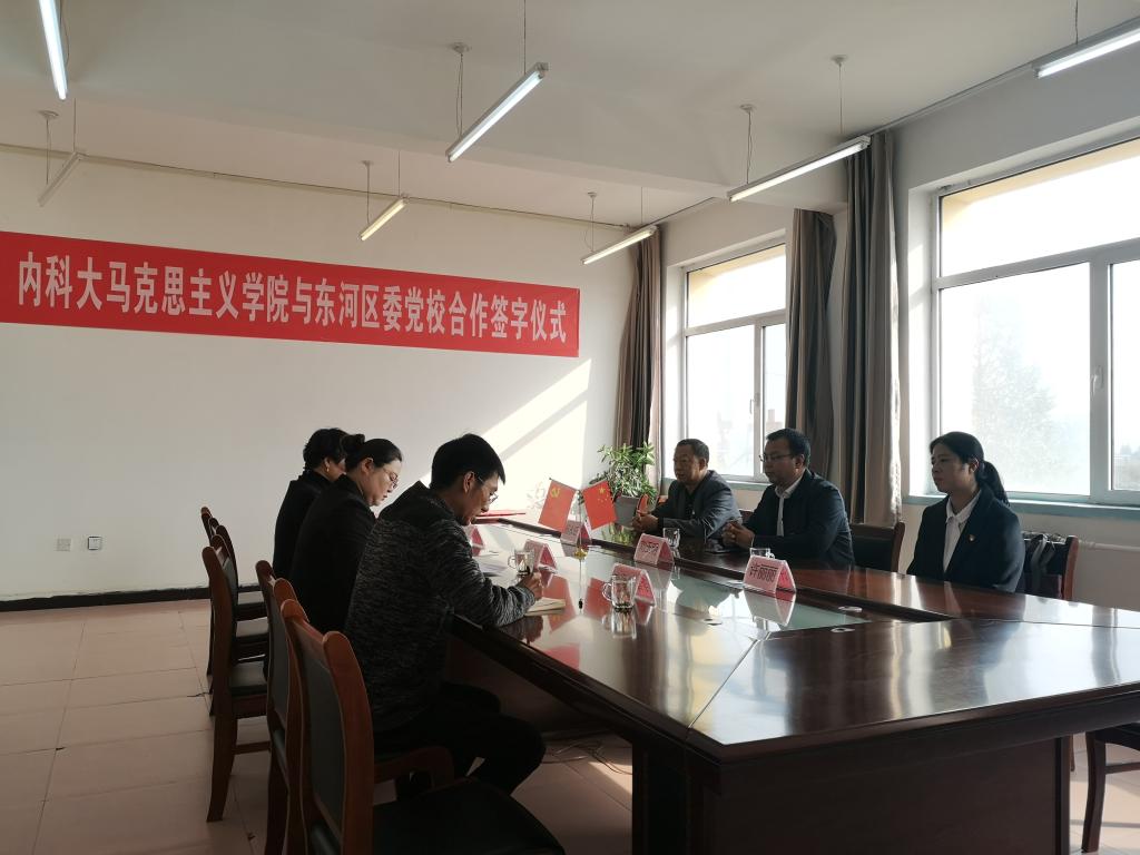 党总支与中共包头市东河区委党校签署合作协议仪式在东河区委党校二楼会议室进行。东河区委副书记、东河区委党校校长赵娟、常务副校长孙宝晶、副校长李星光,大象传媒