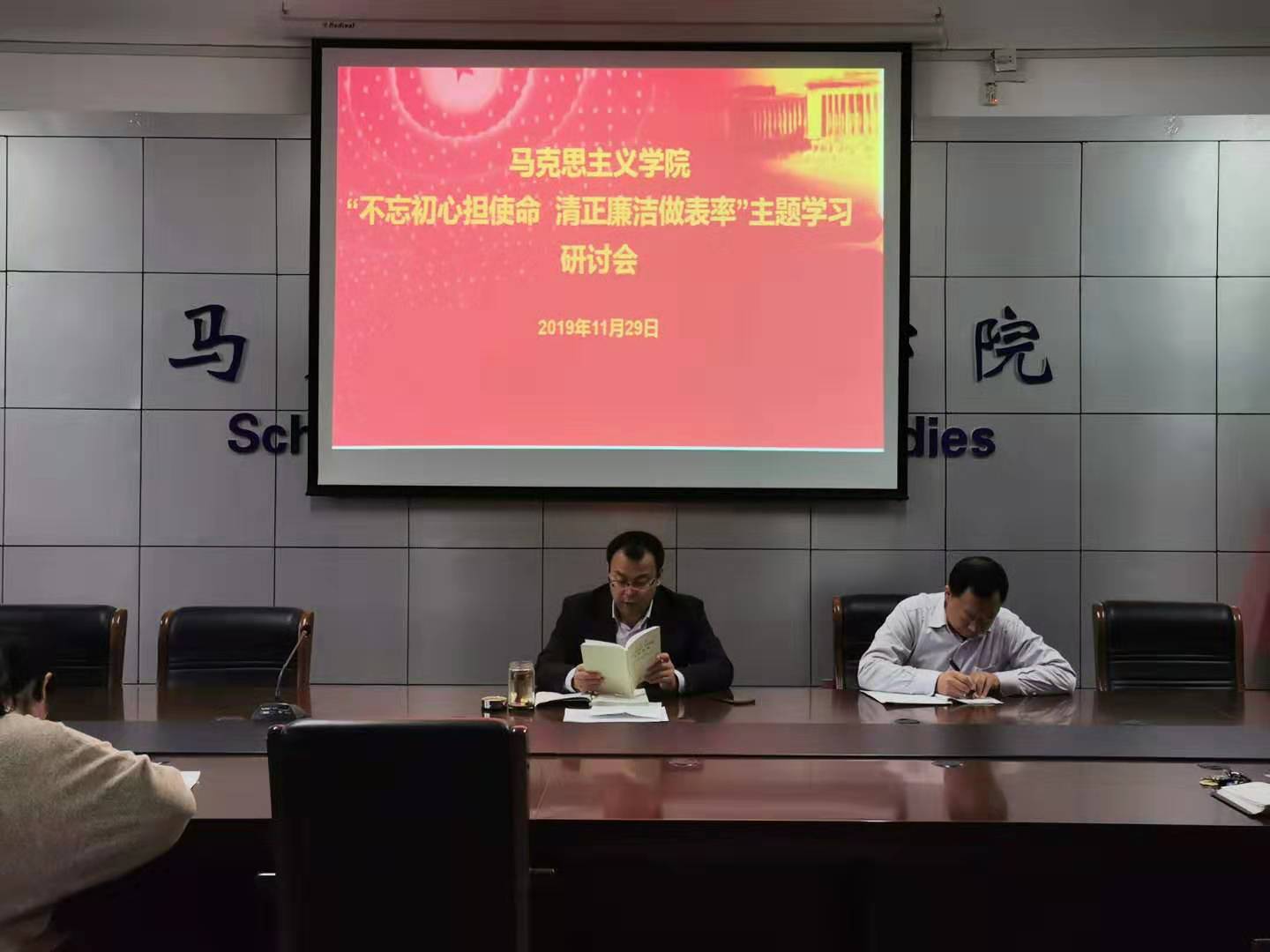 在腾飞楼C517会议室开展“不忘初心担使命、清正廉洁作表率”专题学习研讨。